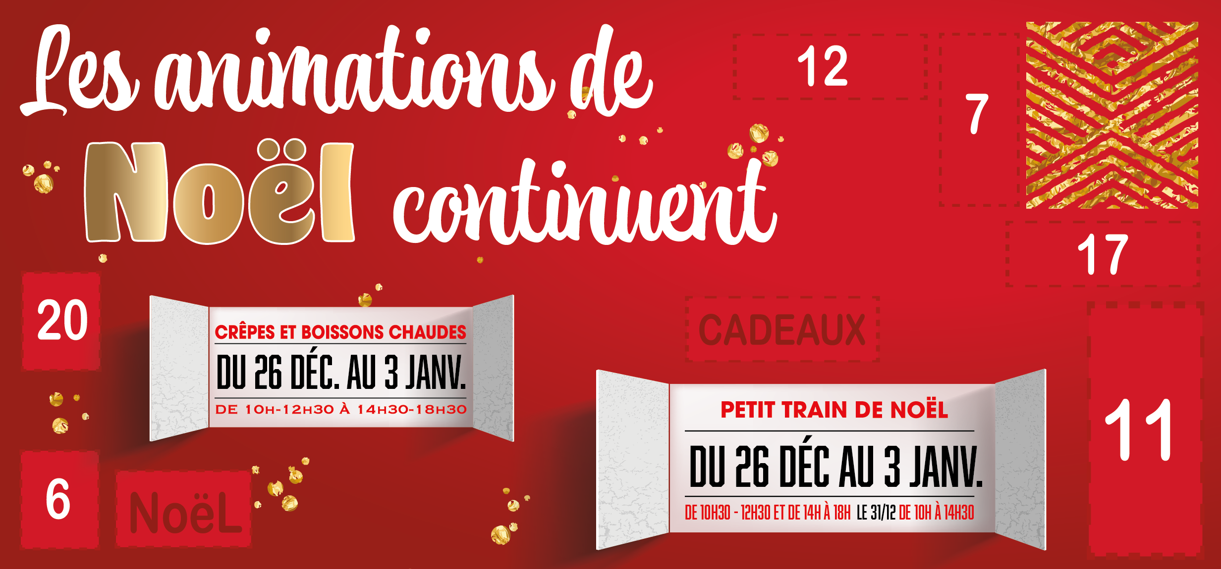 OUVERTURE EXCEPTIONNELLE DE 8H30 À 19H : LE DIMANCHE 30 NOVEMBRE ET LES DIMANCHES 7, 21 ET 28 DÉCEMBRE